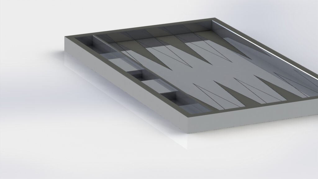 Designed backgammon board for my father to practice generating G-Code using enterprise CAD software.